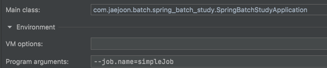 옵션을 추가하여 program arguments에 job 이름을 넣어주어 실행시켜주면 된다.