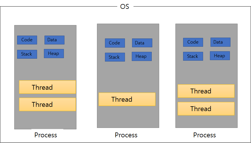 즉 프로세스는 하나 이상의 쓰레드를 가지고 있다고도 말할 수 있다.