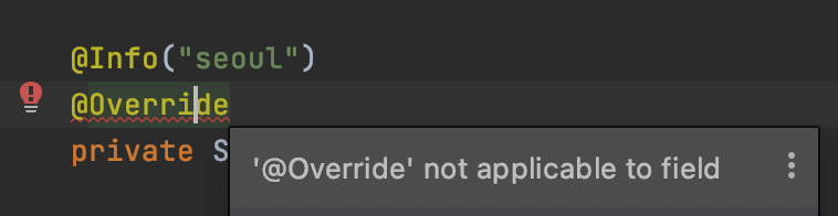 여기서 주의할 점은 내가 만든 애노테이션이 필드 외 다른 위치(메서드 , 생성자 등등)에 붙는다면?