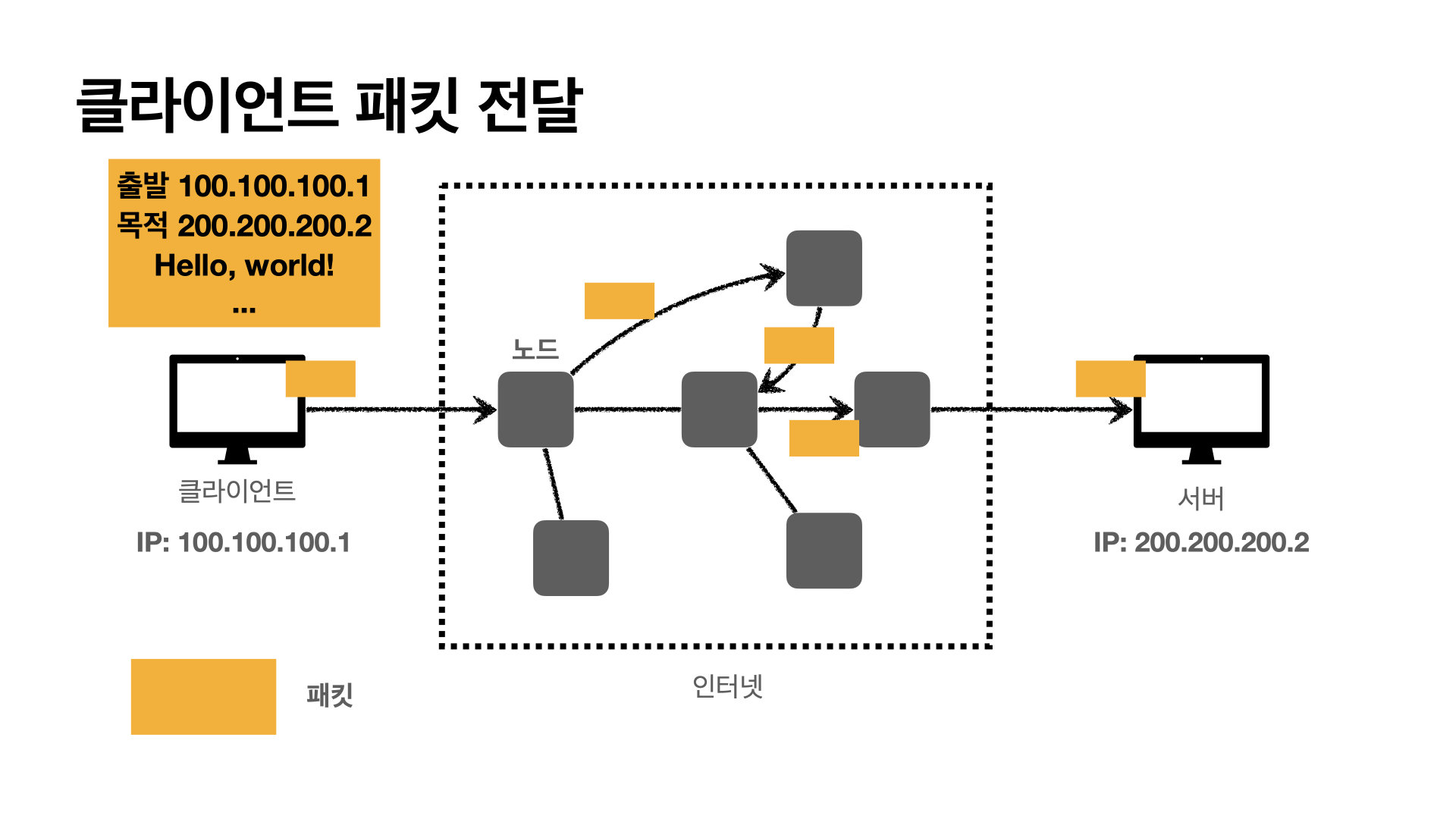 그러면 현실세계에서는 편지로 데이터를 주고 받지만 인터넷 망에서는 PacKet(패킷) 이라는 통신 단위로 데이터를 주고 받는다.