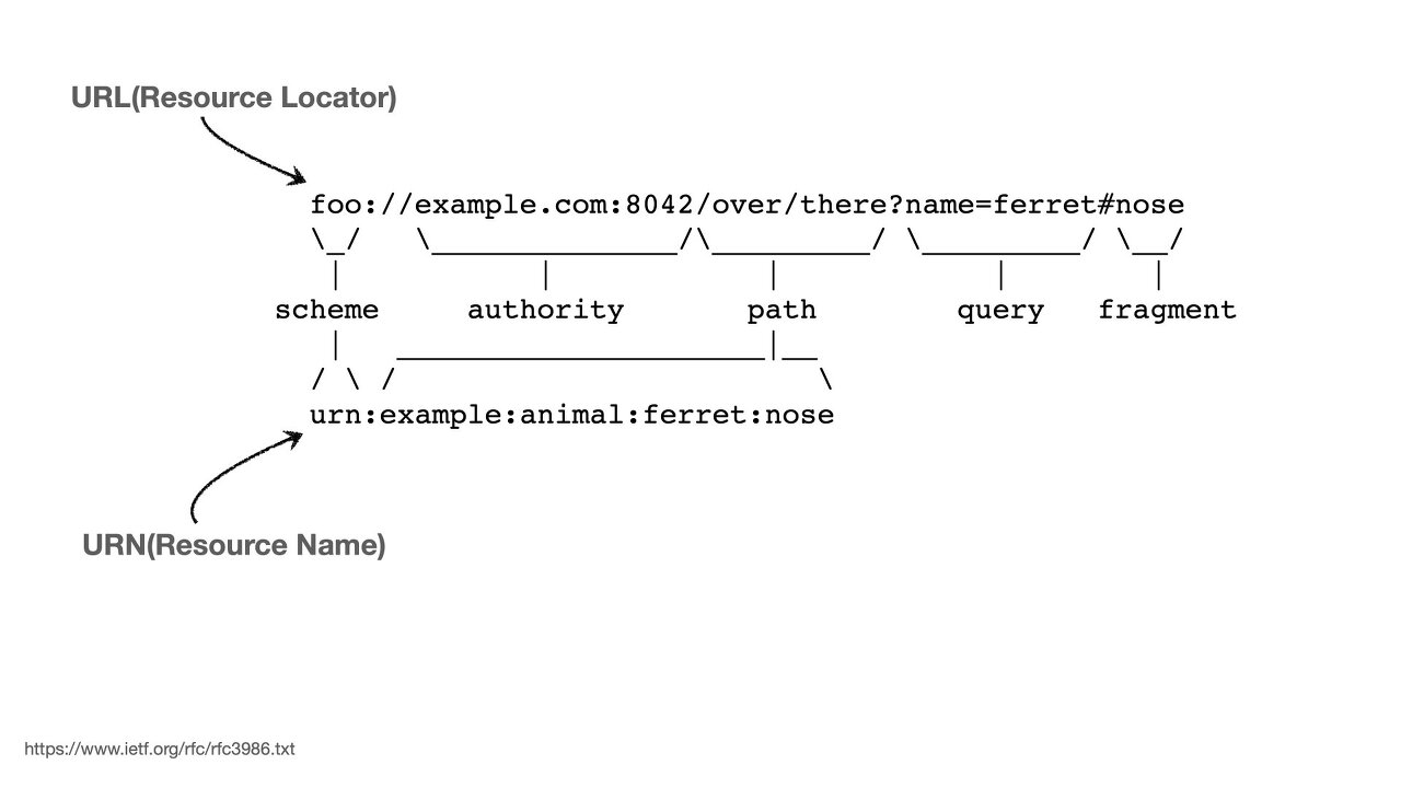 URN 같은 경우는 자원에 대해서 이름만으로 리소스를 식별하는데 해당 방식은 잘 사용하지 않는다.